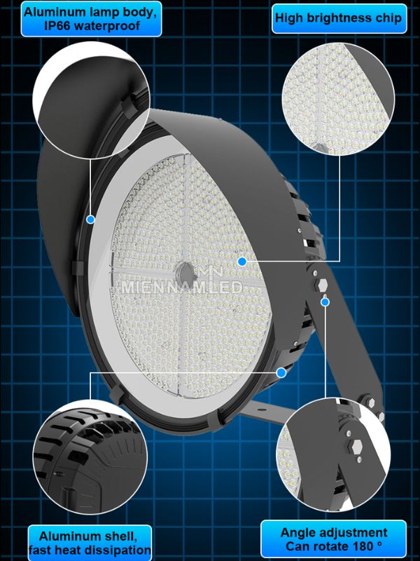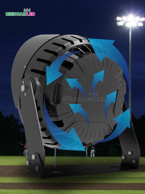 - Công suất cực đại 1200W: Mang lại nguồn sáng mạnh mẽ, có khả năng bao phủ các diện tích rộng như sân vận động, bến cảng, sân bay hay các công trường xây dựng quy mô lớn.